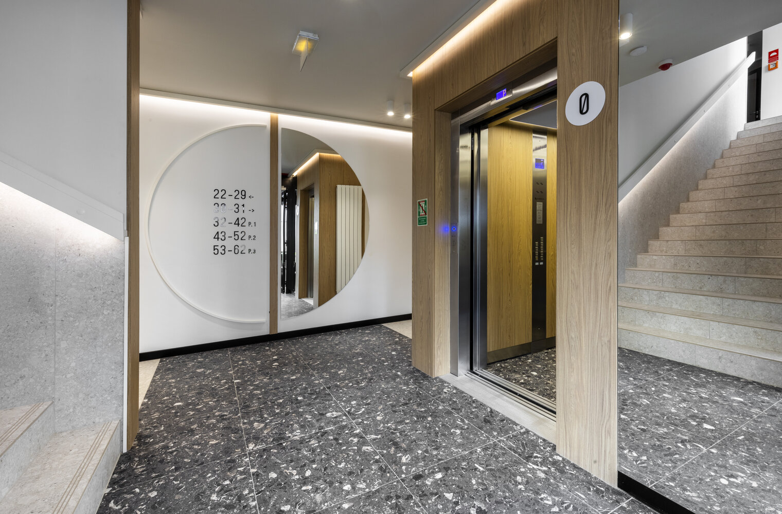 i precyzyjnie wykonane oznaczenia pięter nadają wnętrzom