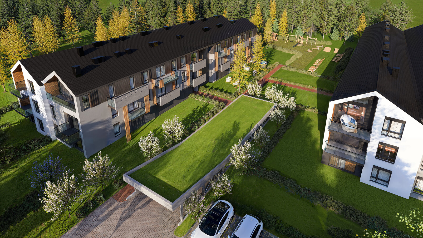Osiedle powstaje w zadrzewionym, naturalnie zielonym otoczeniu, z