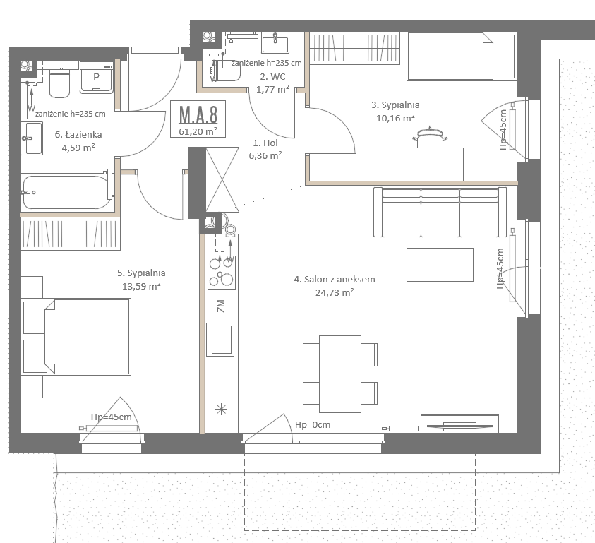 2 piętro, 4 pokoje