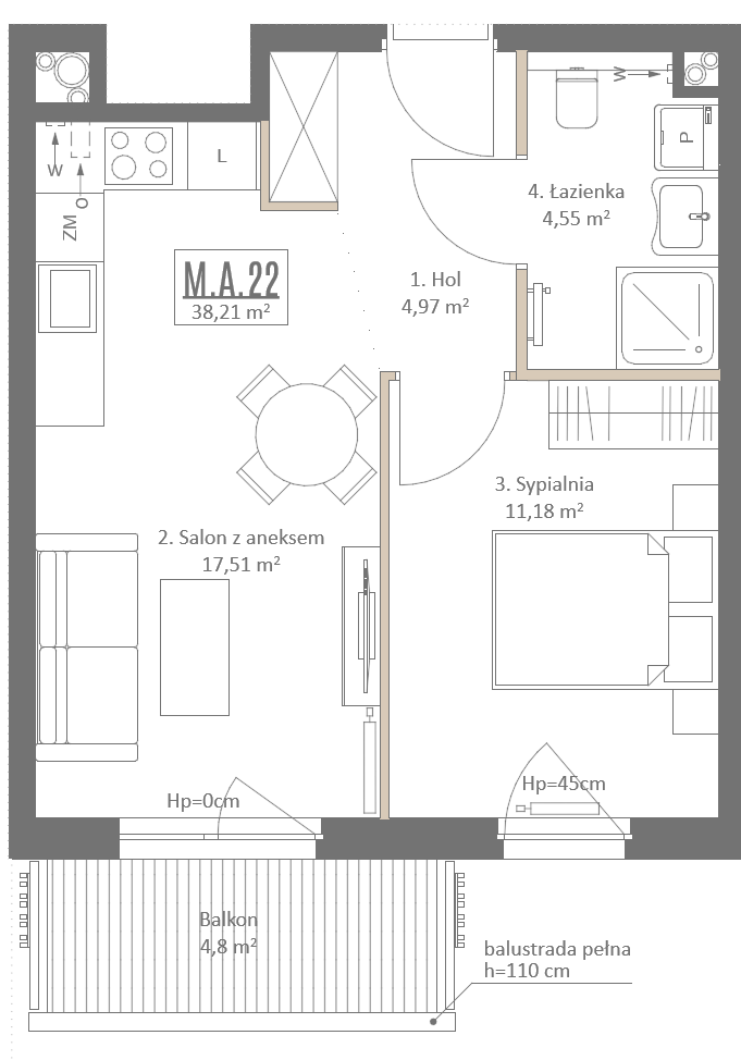 1 piętro, 2 pokoje