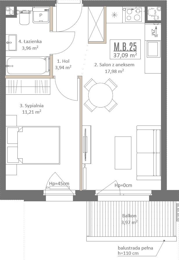 1 piętro, 2 pokoje