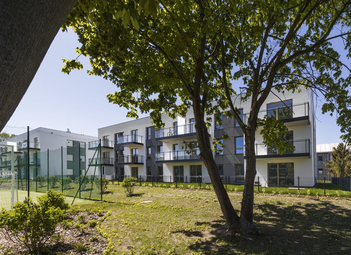Co wyróżnia to osiedle? Przede wszystkim konsekwentnie zaprojektowana architektura: nowoczesne, eleganckie bryły budynków wykończone w stonowanej kolorystyce, duże przeszklenia zapewniające naturalne doświetlenie wnętrz oraz przestronne balkony, które stanowią przedłużenie mieszkania na świeżym powietrzu. Otoczenie budynków zostało starannie zaplanowane – znajdziemy tu zarówno zieleń urządzoną, jak i miejsca do rekreacji i wypoczynku: bezpieczny plac zabaw dla dzieci, ogrodzone boisko wielofunkcyjne, ławki, alejki spacerowe, a także liczne nasadzenia, które z każdym sezonem będą się pięknie rozwijać.