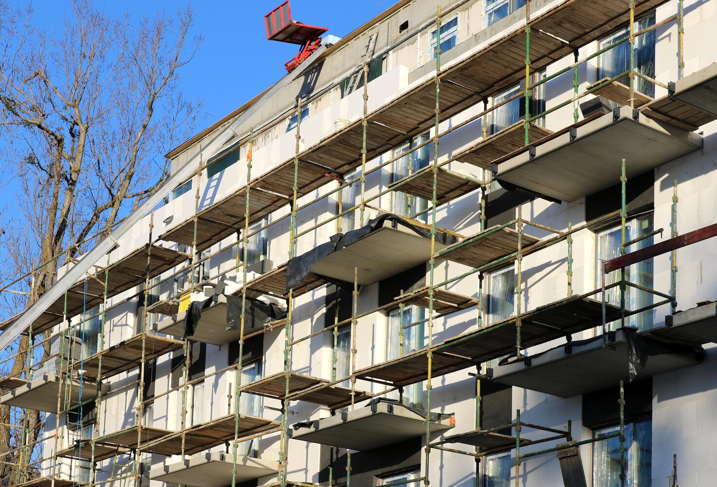 toczą się intensywne roboty elewacyjne.