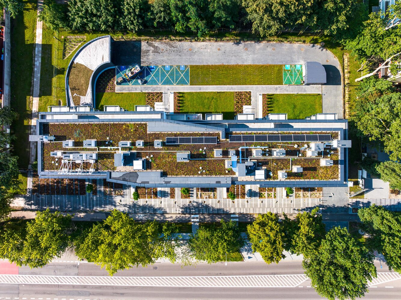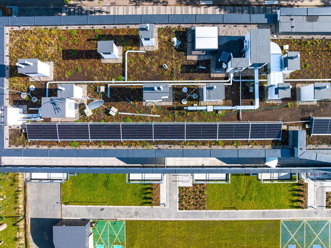 Na dachu budynku zainstalowaliśmy system paneli fotowoltaicznych.