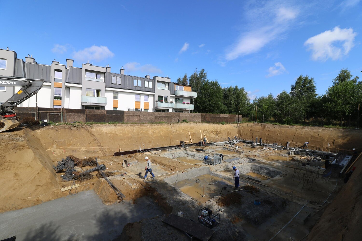 świeżo wykonanym wykopie pojawiły się pierwsze ściany ław