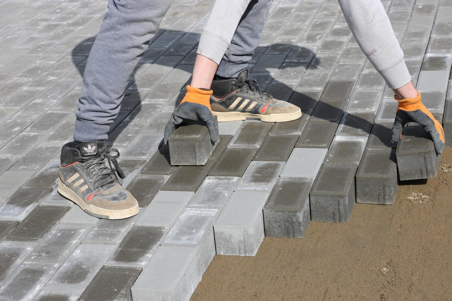 utwardzonej kostką brukową powierzchni, na której już