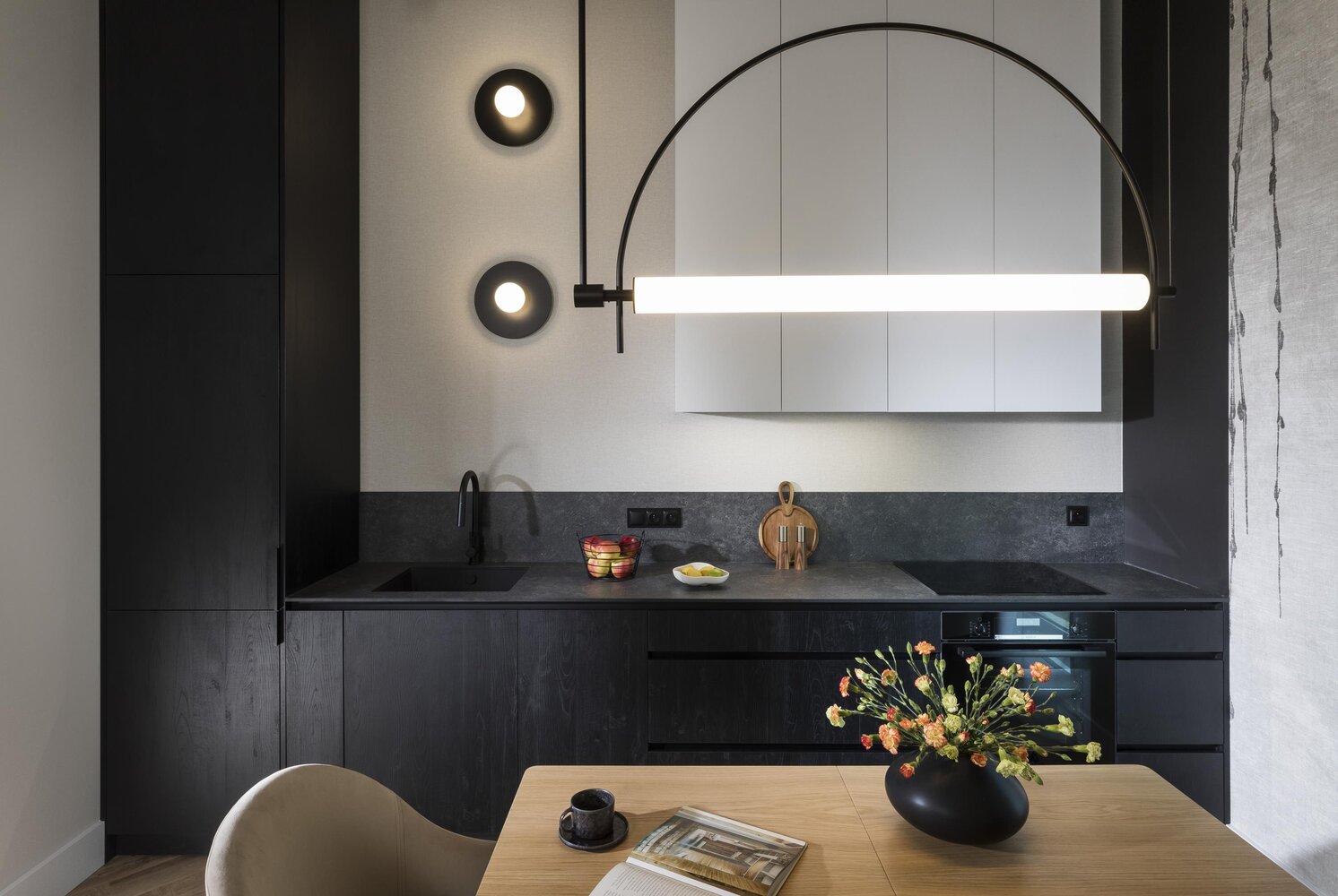 w środku - piękne meble, starannie dobrana armatura kuchenna i