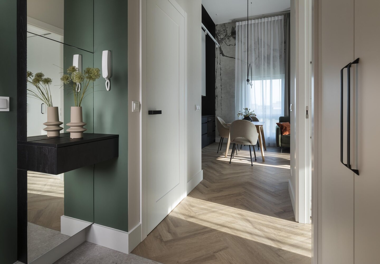 kuchennym, dwie sypialnie, praktyczny korytarz, piękna łazienka