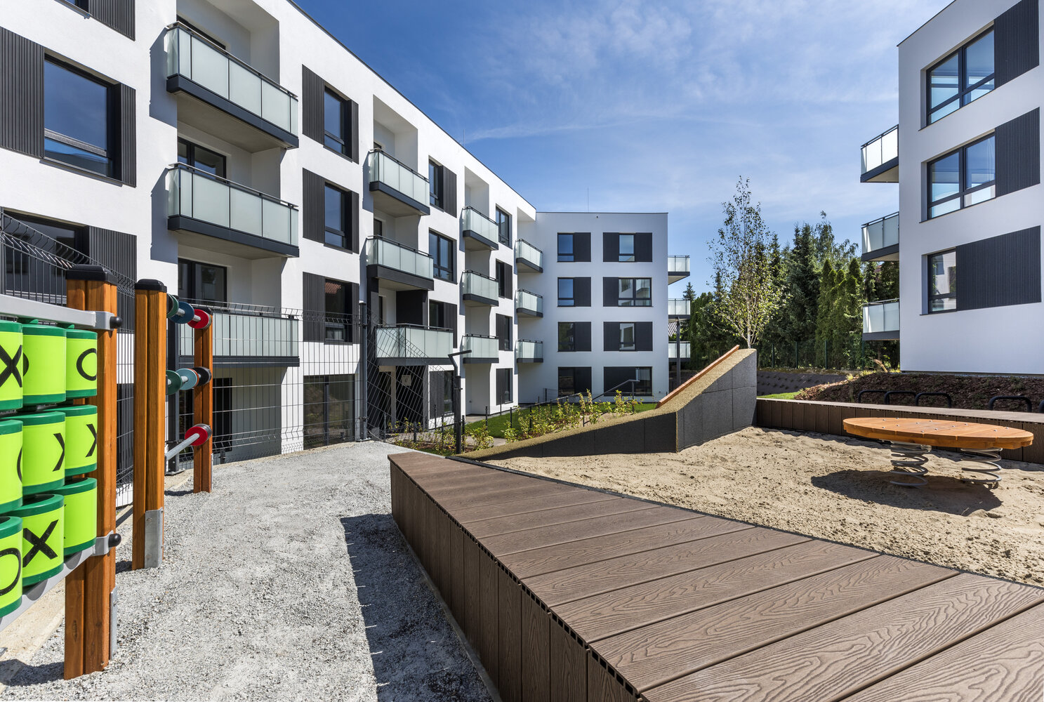 Yoga to miejsce, gdzie można poczuć harmonię. Kameralna skala zabudowy sprawia, że inwestycja doskonale współgrała z okolicznym krajobrazem, tworząc przestrzeń sprzyjającą relaksowi. Otaczające tereny zielone oraz liczne ścieżki spacerowe czynią z tego miejsca idealną bazę dla osób aktywnych oraz rodzin z dziećmi.