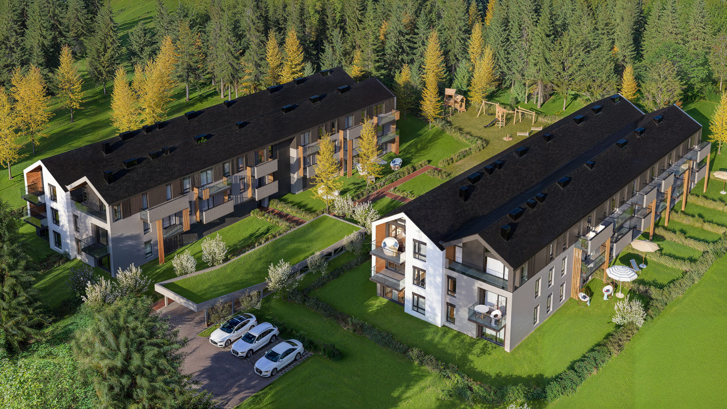 Osiedle powstaje w zadrzewionym, naturalnie zielonym otoczeniu, z