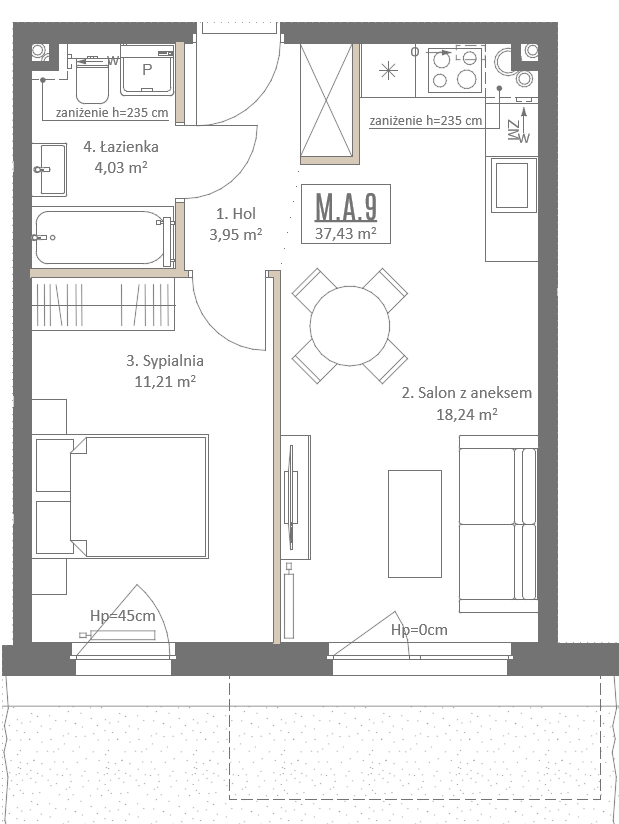 parter, 2 pokoje