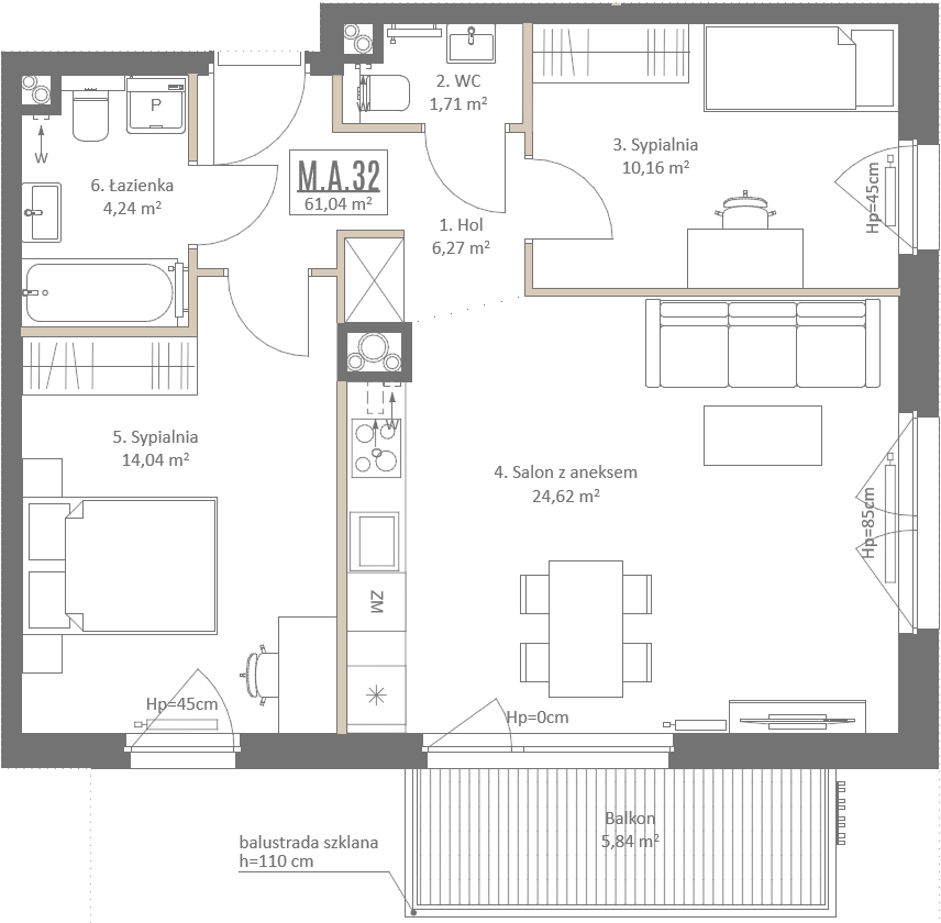 1 piętro, 3 pokoje