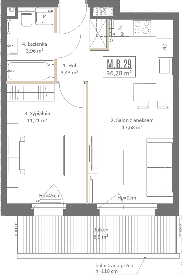 1 piętro, 4 pokoje